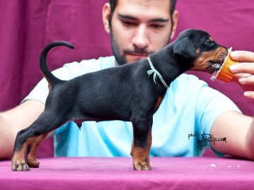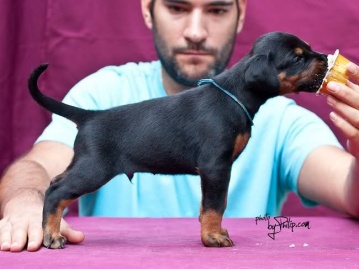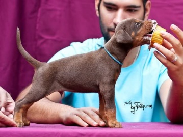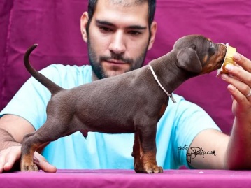 | brown male - light blue collar at 50 days old |
