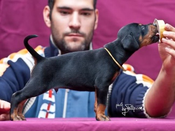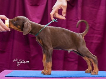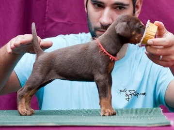 | brown female - red collar at 50 days old |