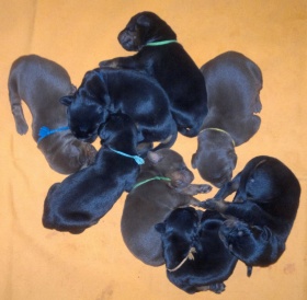 | black male - green collar at 50days old |